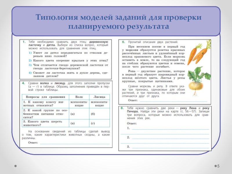 Слайд 5Типология моделей заданий для проверки планируемого результата