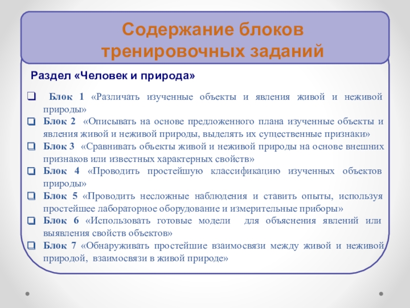 Блок 7 «Обнаруживать простейшие взаимосвязи между живой и неживой природой, взаимосвязи в живой природе»