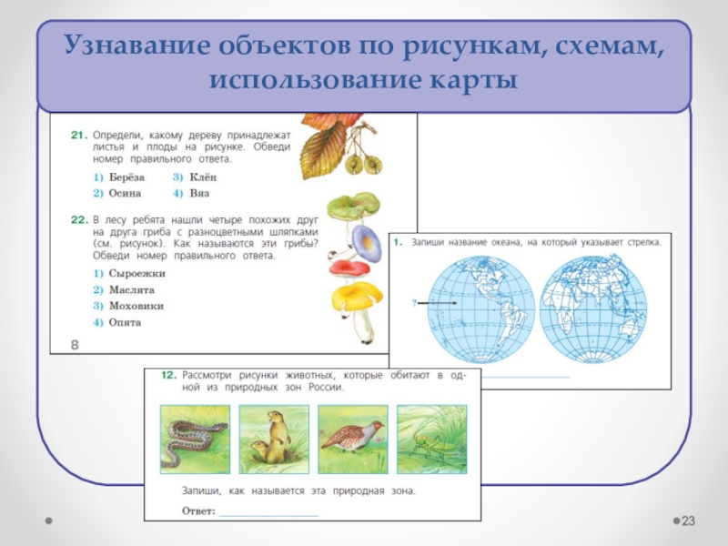 Слайд 23Узнавание объектов по рисункам, схемам, использование карты