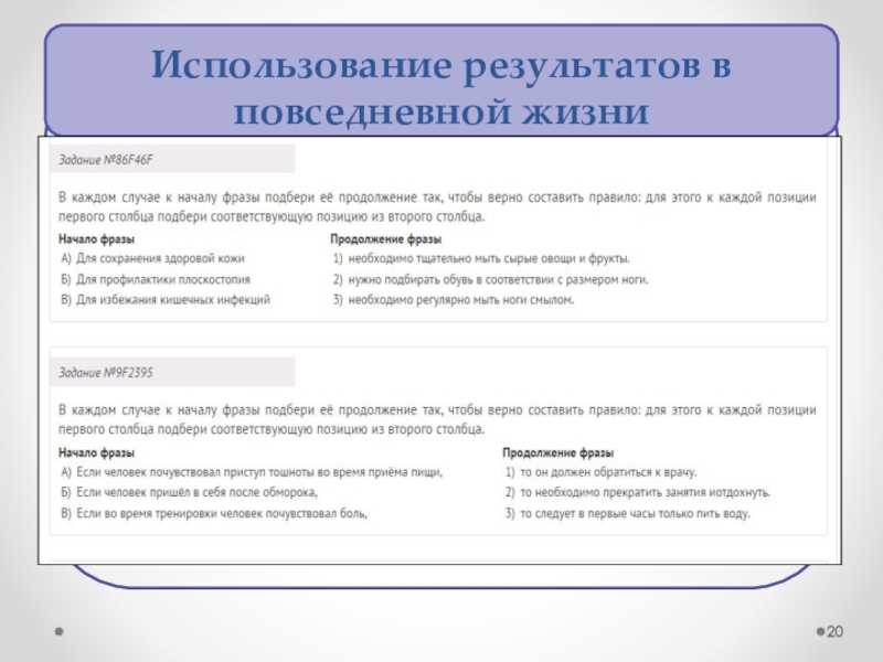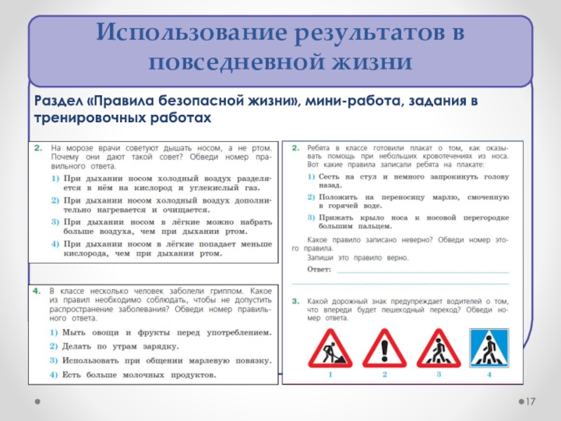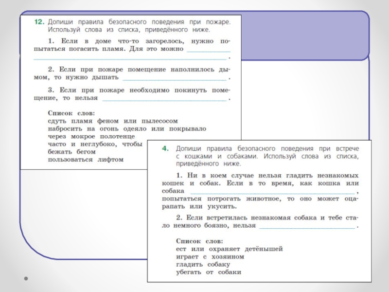 Раздел «Правила безопасной жизни», мини-работа, задания в