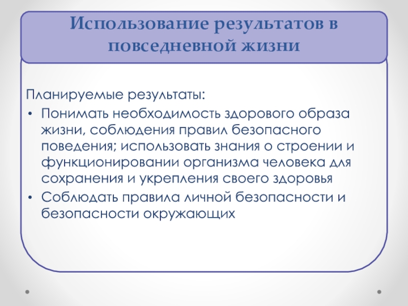 правил безопасного поведения; использовать знания о строении и функционировании организма человека для сохранения и укрепления своего здоровья