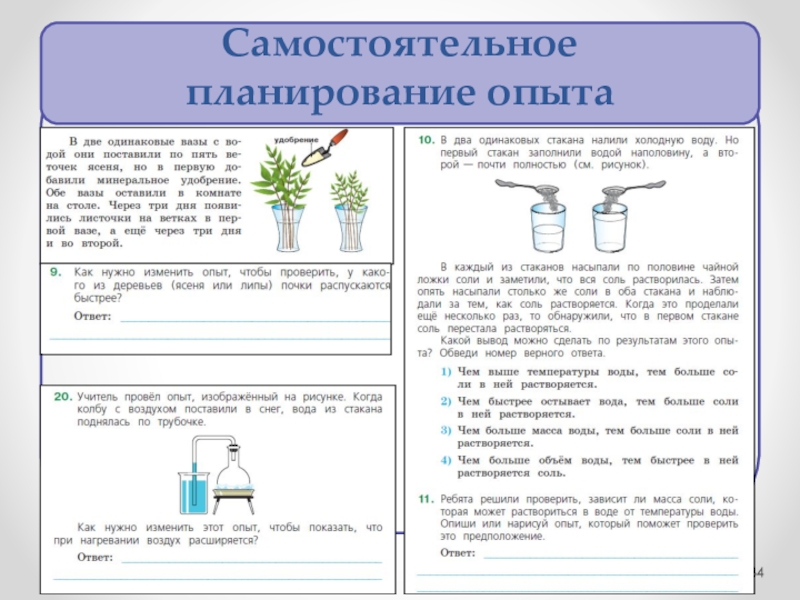 Анализировать ход опыта, находить ошибки в постановке опыта