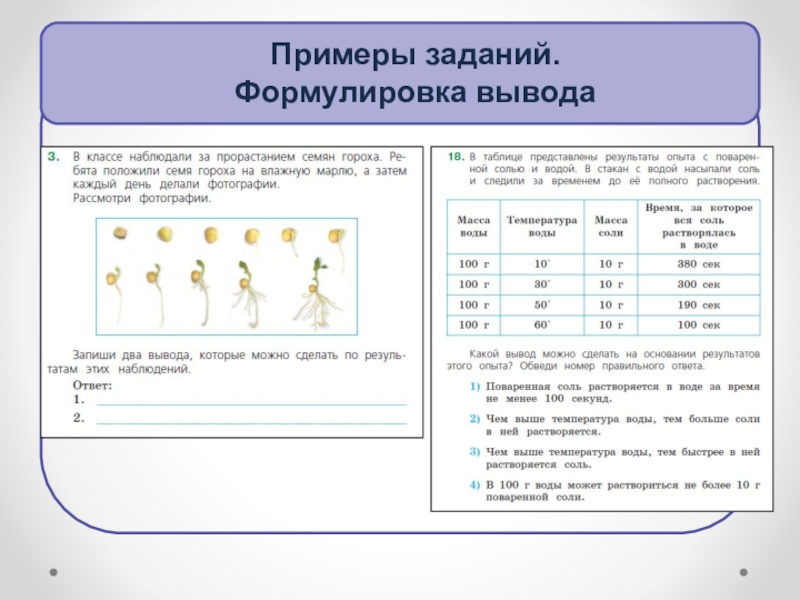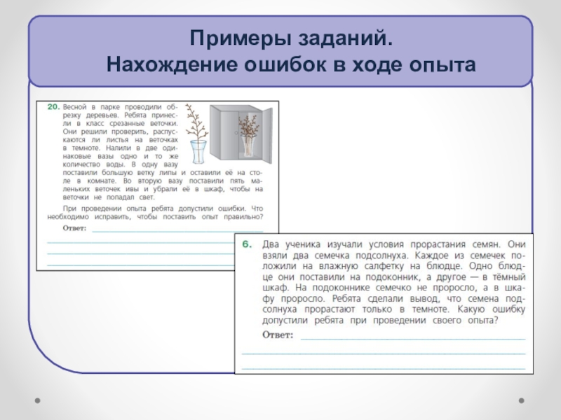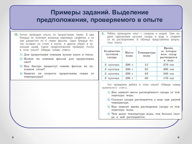 Слайд 31Примеры заданий. Выделение предположения, проверяемого в опыте