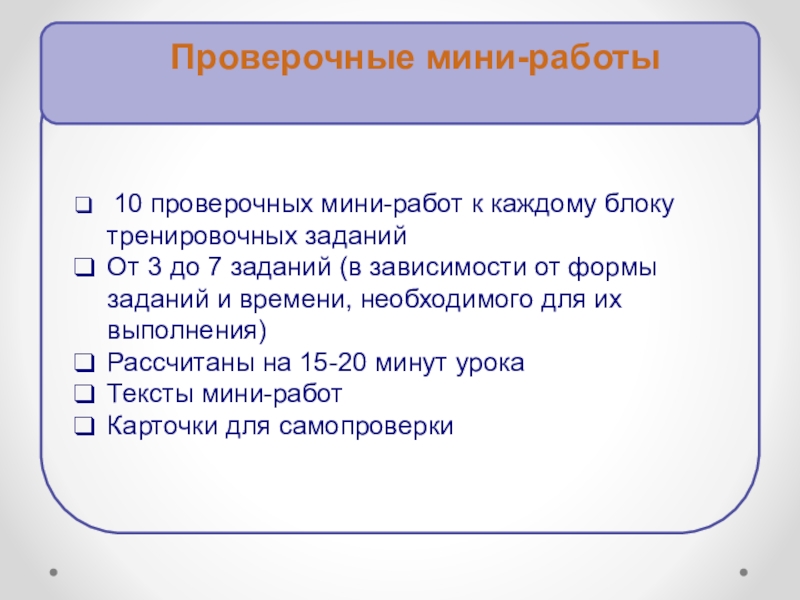 10 проверочных мини-работ к каждому блоку тренировочных заданий