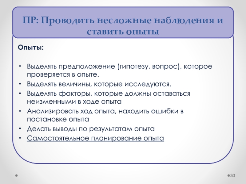 Слайд 30ПР: Проводить несложные наблюдения и ставить опыты