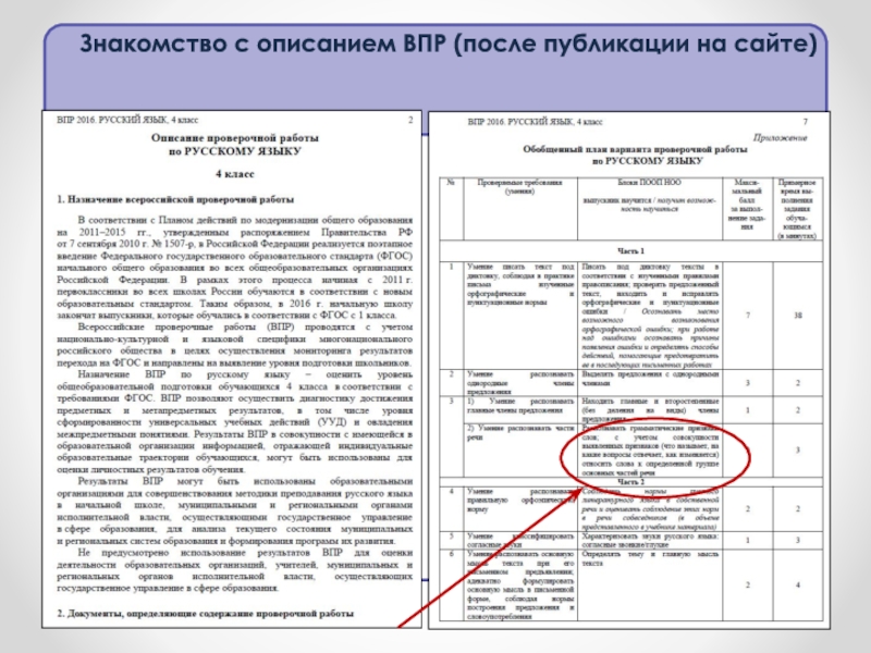 Слайд 11Знакомство с описанием ВПР (после публикации на сайте)