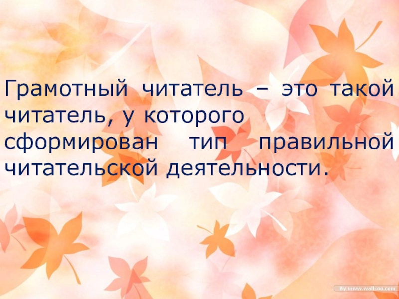 Слайд 4Грамотный читатель – это такой читатель, у которого