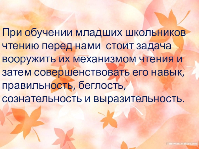 Слайд 3При обучении младших школьников чтению перед нами стоит задача вооружить их