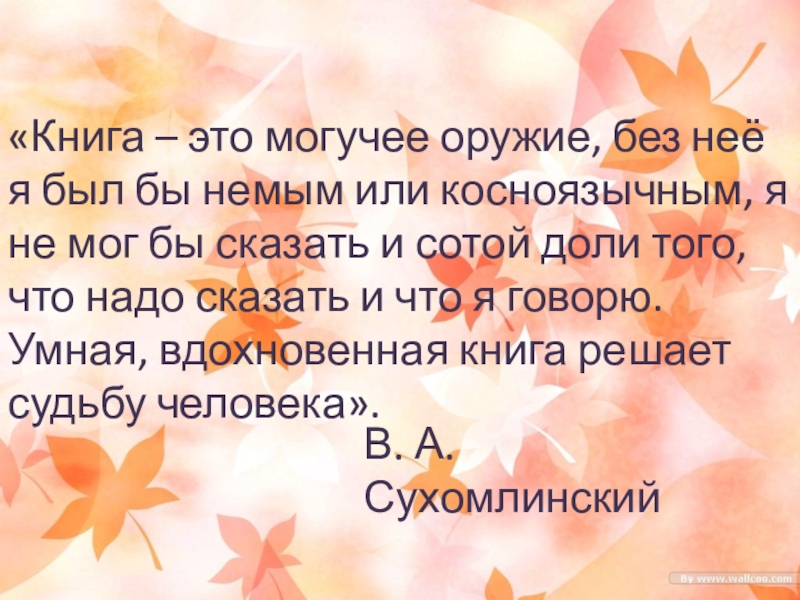 Слайд 2«Книга – это могучее оружие, без неё я был бы немым