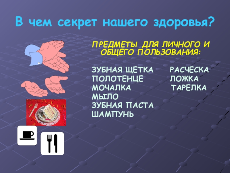 Это сайт презентаций, где можно хранить и обмениваться своими презентациями, докладами, проектами, шаблонами в формате PowerPoint с другими пользователями. Мы помогаем школьникам, студентам, учителям, преподавателям хранить и обмениваться учебными материалами.