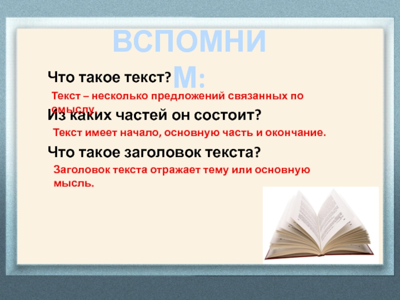 Текст – несколько предложений связанных по смыслу.
