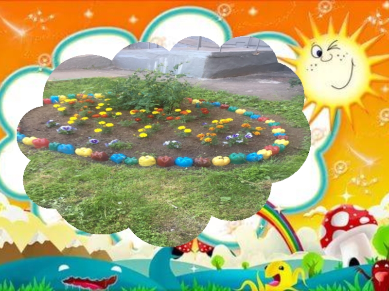 Презентация, доклад на тему как украсить участок в детском садуКлумба из пластиковых бутылок