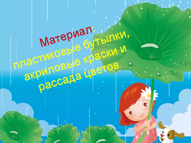 Слайд 3Материал: пластиковые бутылки, акриловые краски и рассада цветов