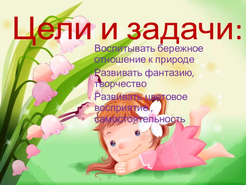 Цели и задачи:Воспитывать бережное отношение к природеРазвивать фантазию, творчествоРазвивать цветовое восприятие , самостоятельность