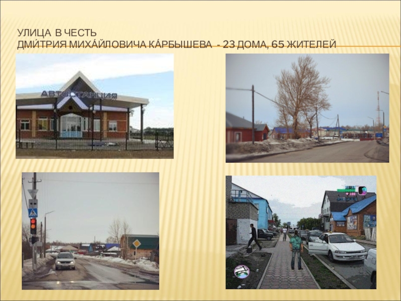 ДМИ́ТРИЯ МИХА́ЙЛОВИЧА КА́РБЫШЕВА - 23 ДОМА, 65 ЖИТЕЛЕЙ