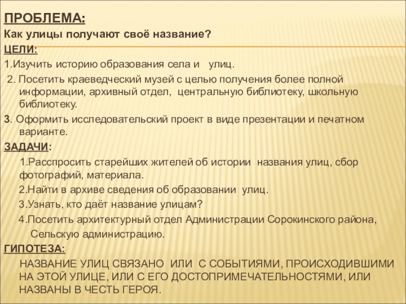 3. Оформить исследовательский проект в виде презентации и печатном варианте.
