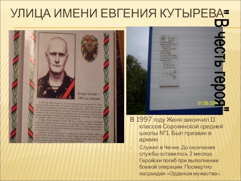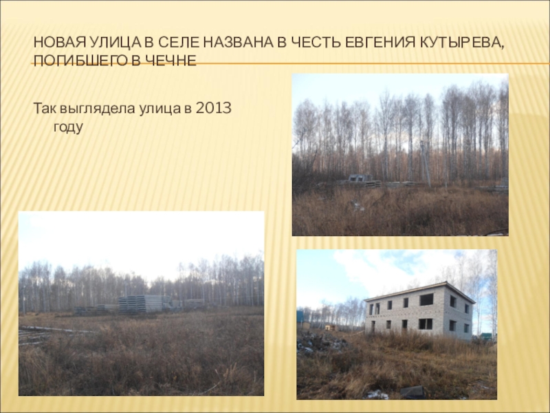 Слайд 14НОВАЯ УЛИЦА В СЕЛЕ НАЗВАНА В ЧЕСТЬ ЕВГЕНИЯ КУТЫРЕВА, ПОГИБШЕГО В