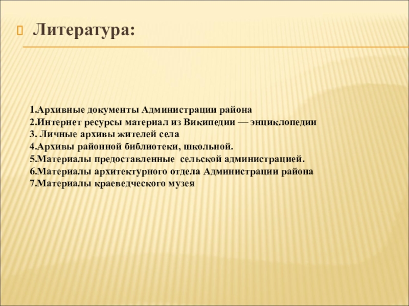Мы узнали, куда можно обратиться за информацией, а также узнали, и побывали в Администрации района, сельской администрации, архитектурном отделе, в архиве, в районной библиотеке, школьной библиотеке, музее.