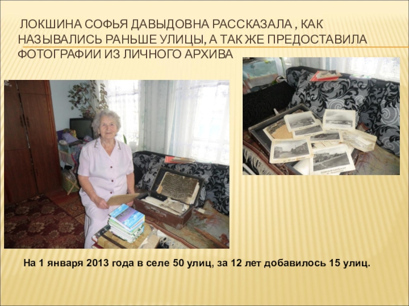 Слайд 11 ЛОКШИНА СОФЬЯ ДАВЫДОВНА РАССКАЗАЛА , КАК НАЗЫВАЛИСЬ РАНЬШЕ УЛИЦЫ, А