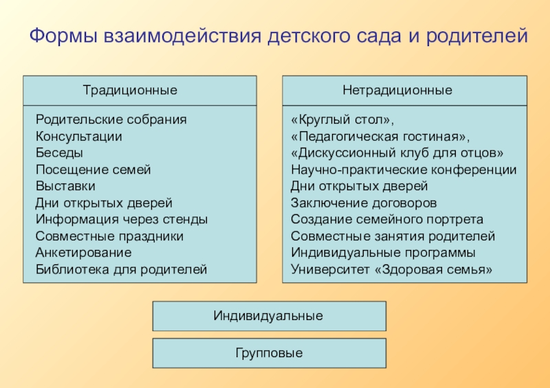 Слайд 7Формы взаимодействия детского сада и родителей