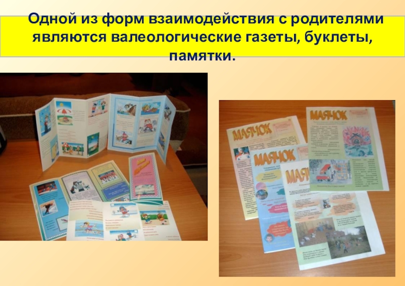 Слайд 17 Одной из форм взаимодействия с родителями являются валеологические газеты, буклеты,