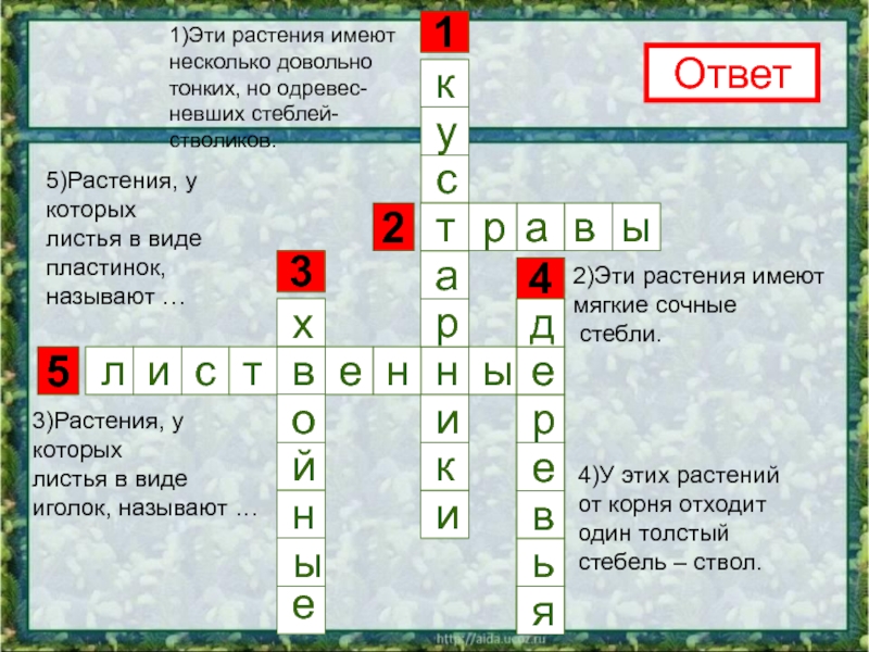 5)Растения, у которых