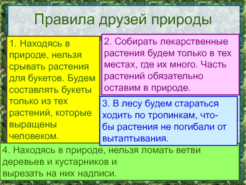 2. Собирать лекарственные растения будем только в тех местах, где их много. Часть растений обязательно оставим в природе.