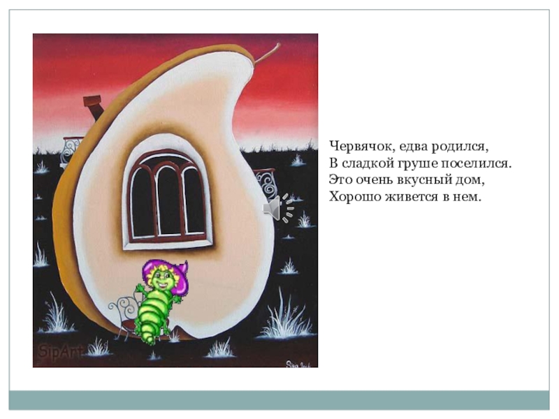 Червячок, едва родился,В сладкой груше поселился. Это очень вкусный дом, Хорошо живется в нем.