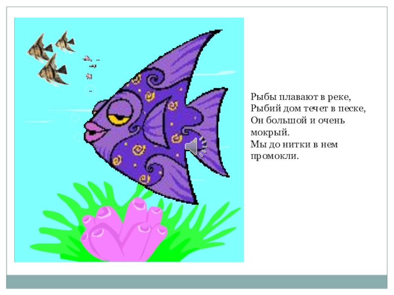 Рыбы плавают в реке,Рыбий дом течет в песке, Он большой и очень мокрый.Мы до нитки в нем
