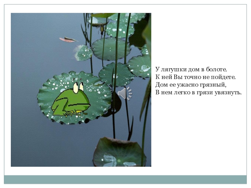 У лягушки дом в болоте.К ней Вы точно не пойдете.Дом ее ужасно грязный,В нем легко в грязи