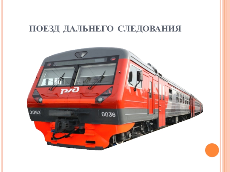 Слайд 29 Железнодорожный транспорт, который перевозит людей и грузы по железнодорожным путям.