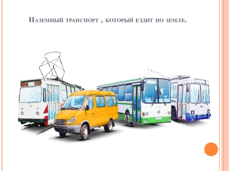 Слайд 4 Наземный транспорт , который ездит по земле.