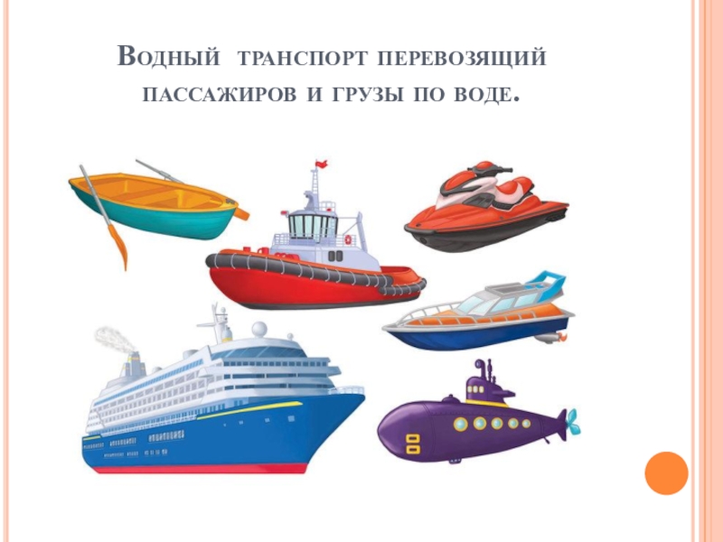Слайд 46Водный транспорт перевозящий пассажиров и грузы по воде.