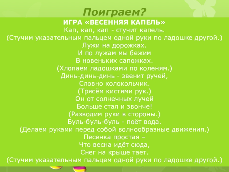 ИГРА «ВЕСЕННЯЯ КАПЕЛЬ»