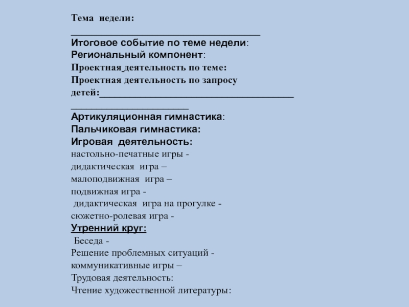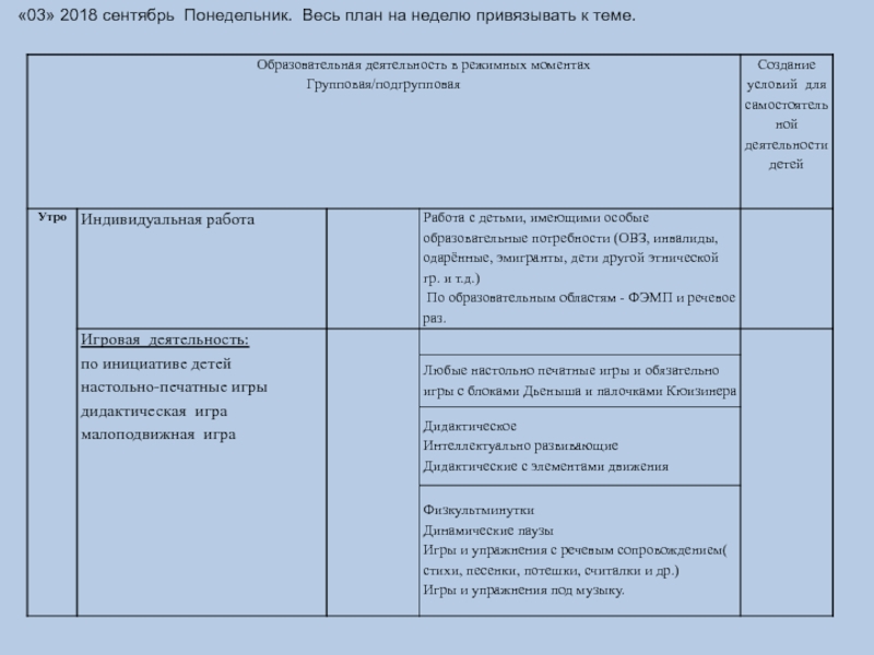 Календарное планирование в соответствии с ФГОС ДОУ