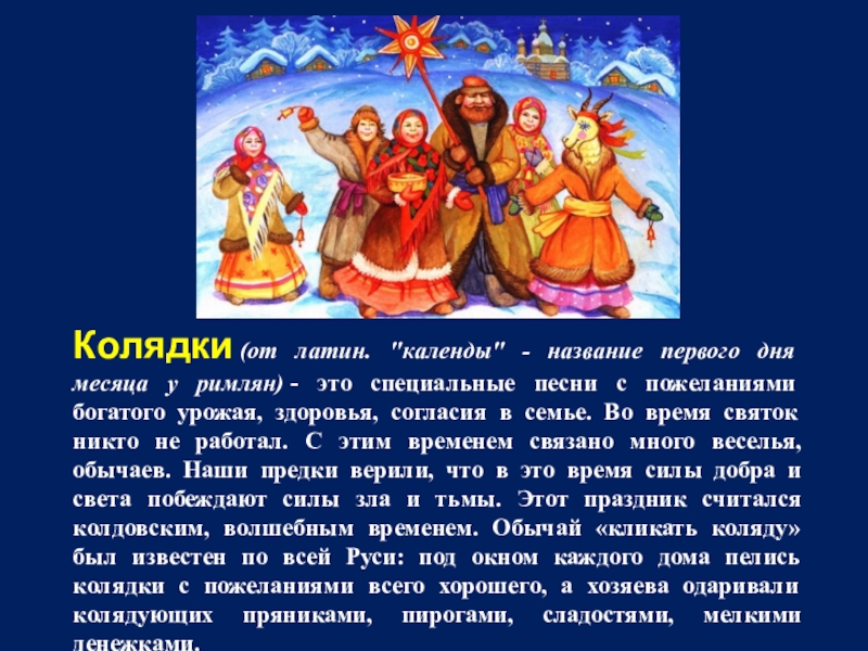 Слайд 8Колядки (от латин. "календы" - название первого дня месяца у римлян) - это