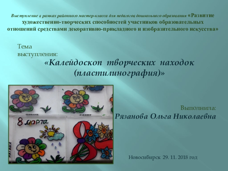 Выступление в рамках районного мастер-класса для педагогов дошкольного образования «Развитие художественно-творческих способностей участников образовательных
