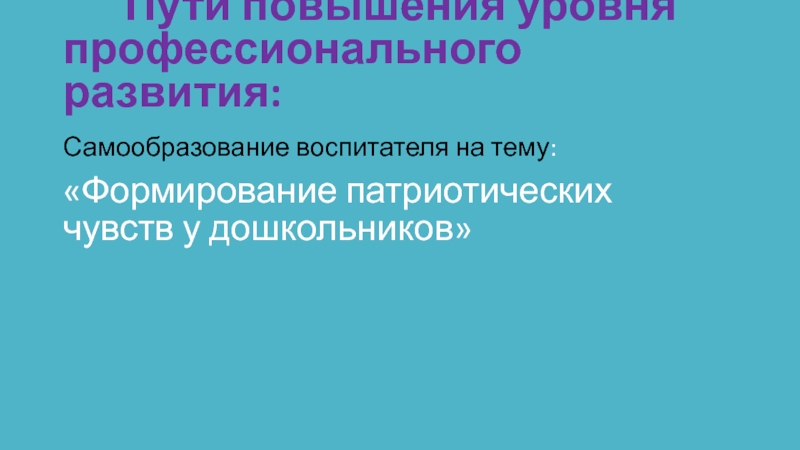Самообразование воспитателя на тему: