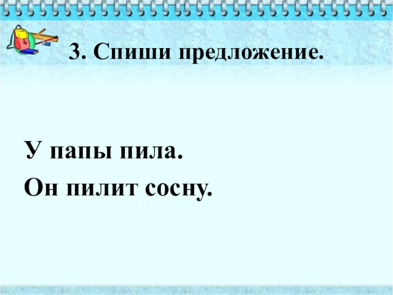 3. Спиши предложение.У папы пила. Он пилит сосну.
