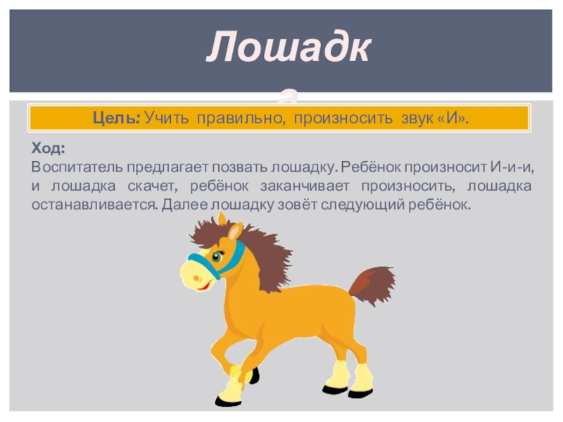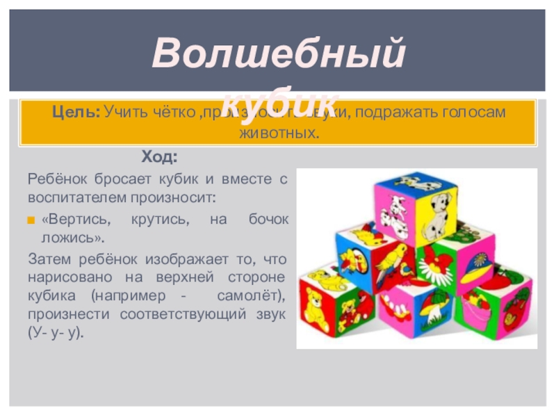 Цель: Учить чётко ,произносить звуки, подражать голосам животных.
