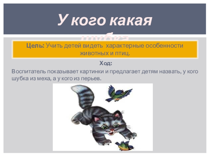 Цель: Учить детей видеть характерные особенности животных и птиц.