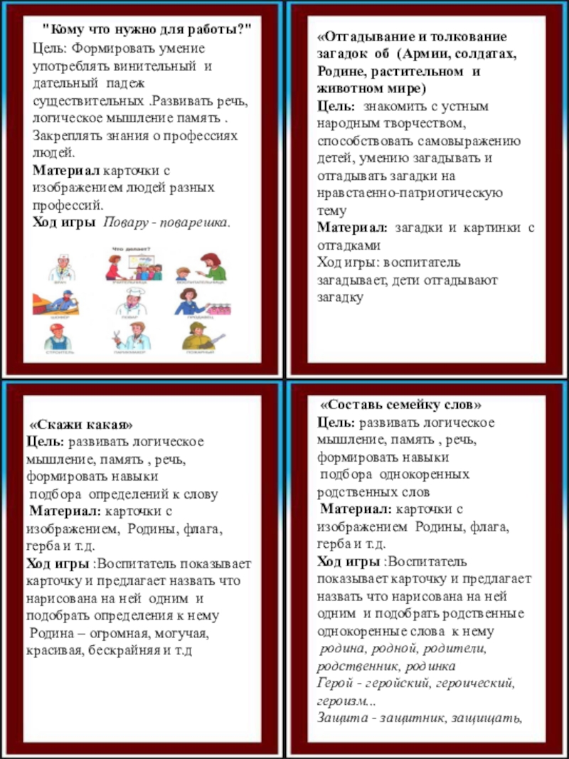 Материал :Картинки с изображением людей, которые исполняют разную работу по дому.