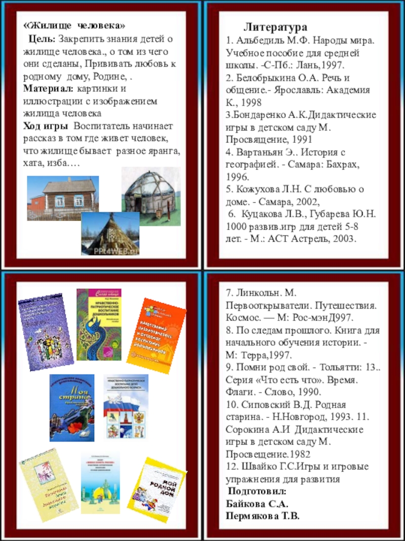 10. Сиповский В.Д. Родная старина. - Н.Новгород, 1993. 11.Сорокина А.И Дидактические игры в детском саду М.Просвещение.1982