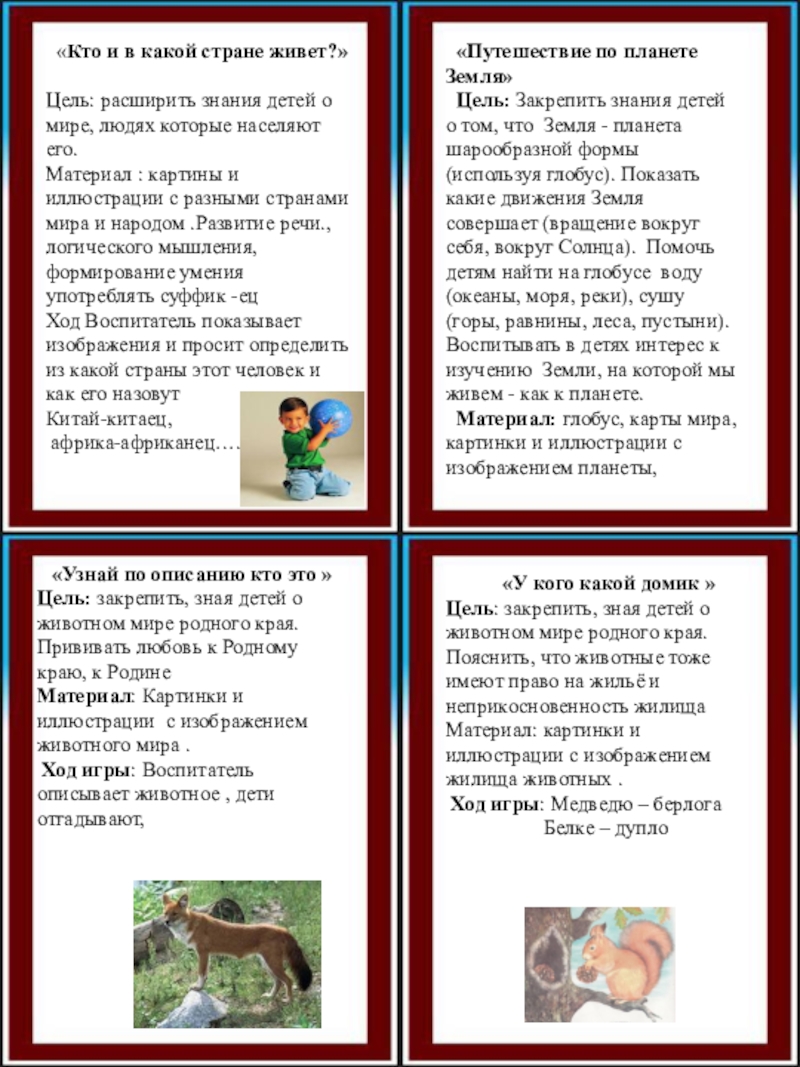 Цель: закрепить, зная детей о животном мире родного края. Пояснить, что животные тоже имеют право на жильё и неприкосновенность жилища