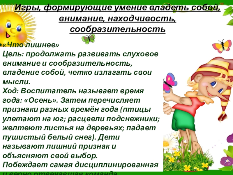 Игры, формирующие умение владеть собой, внимание, находчивость, сообразительность