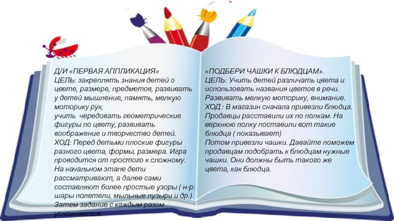 ЦЕЛЬ: Развивать первые математические способности, развивать внимание мышление, умение различать цвет предметов.