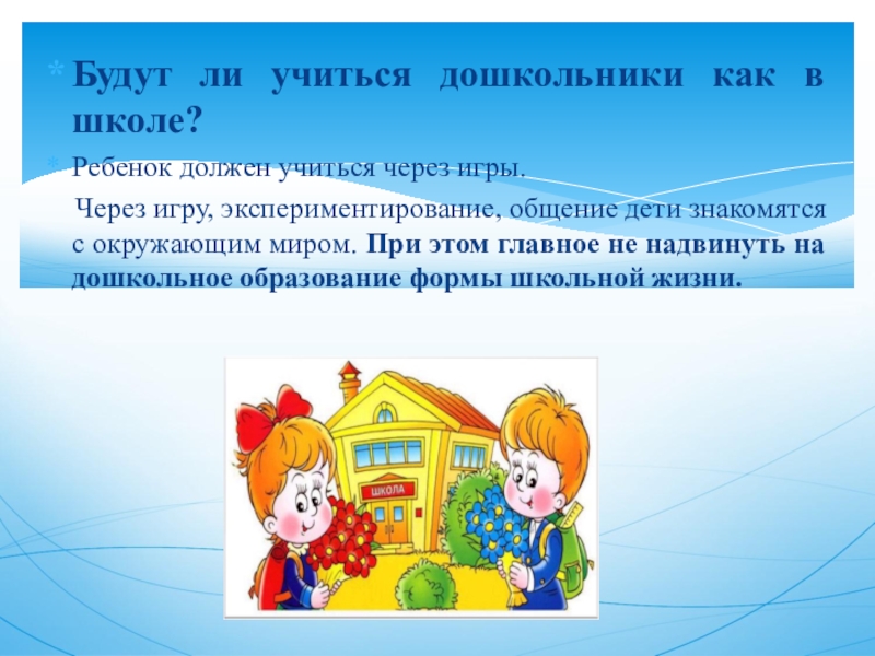 Слайд 9Будут ли учиться дошкольники как в школе?