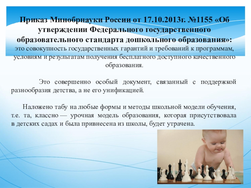 Слайд 3Приказ Минобрнауки России от 17.10.2013г. №1155 «Об утверждении Федерального государственного образовательного