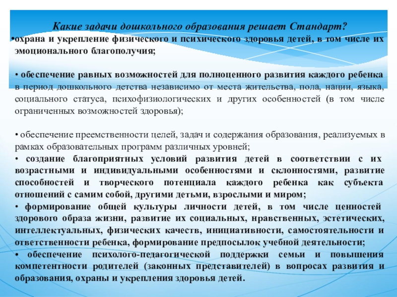 Слайд 5Какие задачи дошкольного образования решает Стандарт?