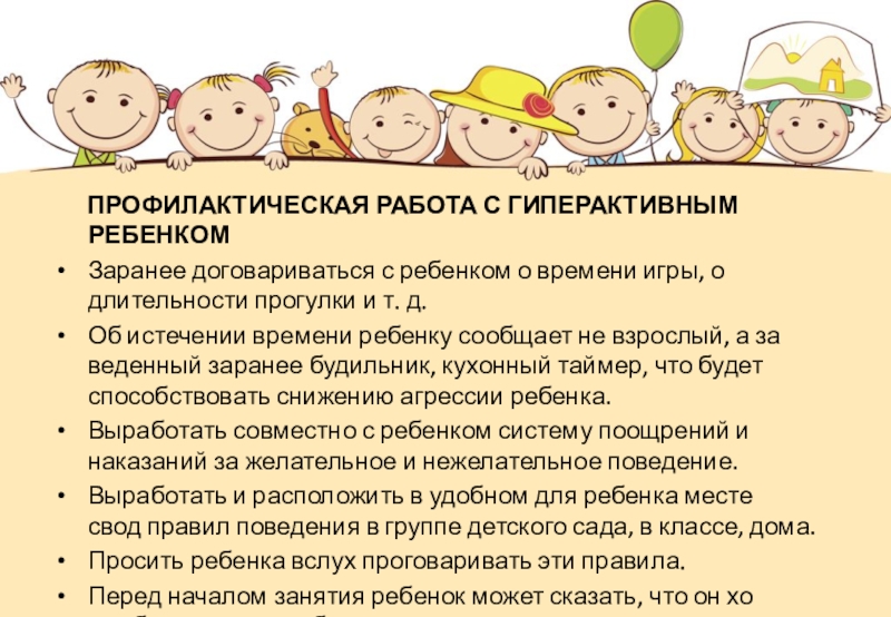 Слайд 27 ПРОФИЛАКТИЧЕСКАЯ РАБОТА С ГИПЕРАКТИВНЫМ РЕБЕНКОМ